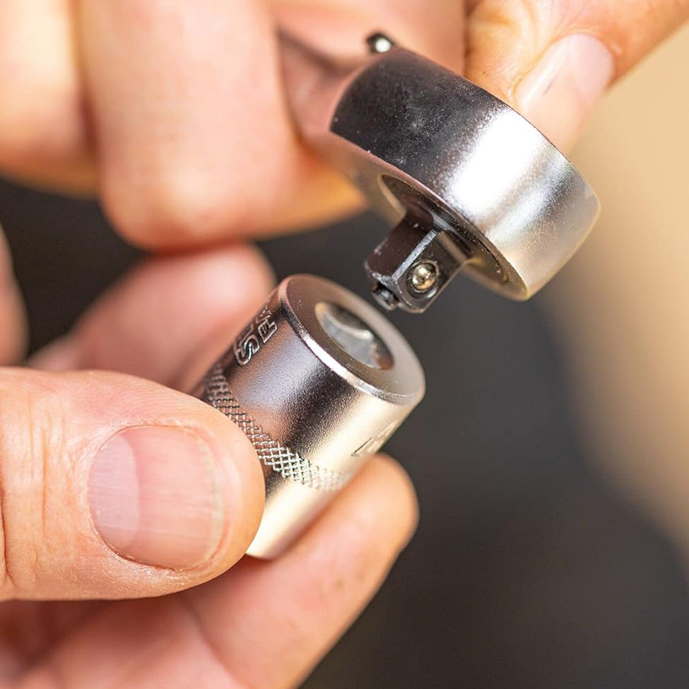 • Nagy, síkban elhelyezett gyorskioldó gombbal rendelkezik a dugókulcsok egyszerű eltávolításához